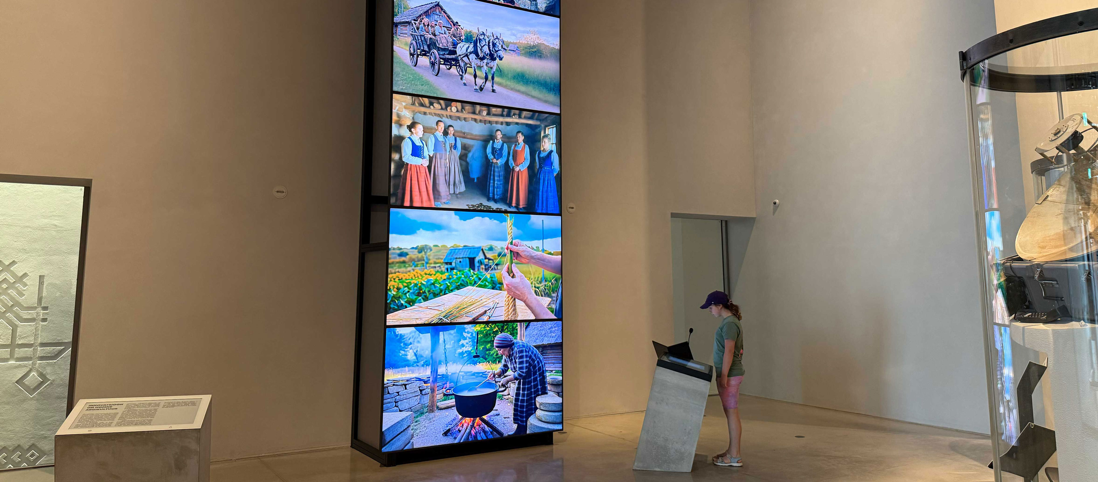 This interactive artwork invites participants to explore a curated selection of 84 historical handwritten pages from ethnographical diaries. At the heart of the installation is a sculpture consisting of a totem of six screens along with an interactive station. Visitors read aloud randomly selected excerpts from historical texts, which the installation records and transforms into visual imagery traveling across the screen sculpture. The images displayed on the screens are generated based on interactions with the five most recent visitors, bridging past and present, transforming centuries-old descriptions of daily life into digital art through visitor engagement.