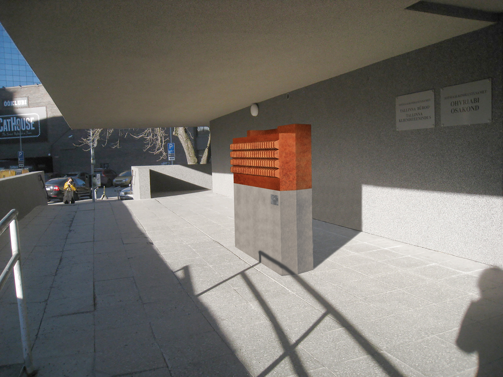 INSIDE-OUT is a public art proposal for Pronksi 12 (Tallinn, Estonia) building. The artwork proposal received III prize in the public art competition of Pronksi 12 by RKAS (State Real Estate), Estonia. The inspiration for the art piece came from the building itself, which has a sculptural form and each side of the building has its own face that needs to be discovered and experienced. Pronksi 12 was built in 1976 by architect Malle Kusma, which is an example of neofuncionalism of 70s. The concept of the sculpture is simple and straight: we have turned the building inside-out and enabled the exploration of unseen inner forms of the building. Our aim was to establish an architectonic dialog and offer an undiscovered perspectives. Material: metal, which get corroded with time, concrete.