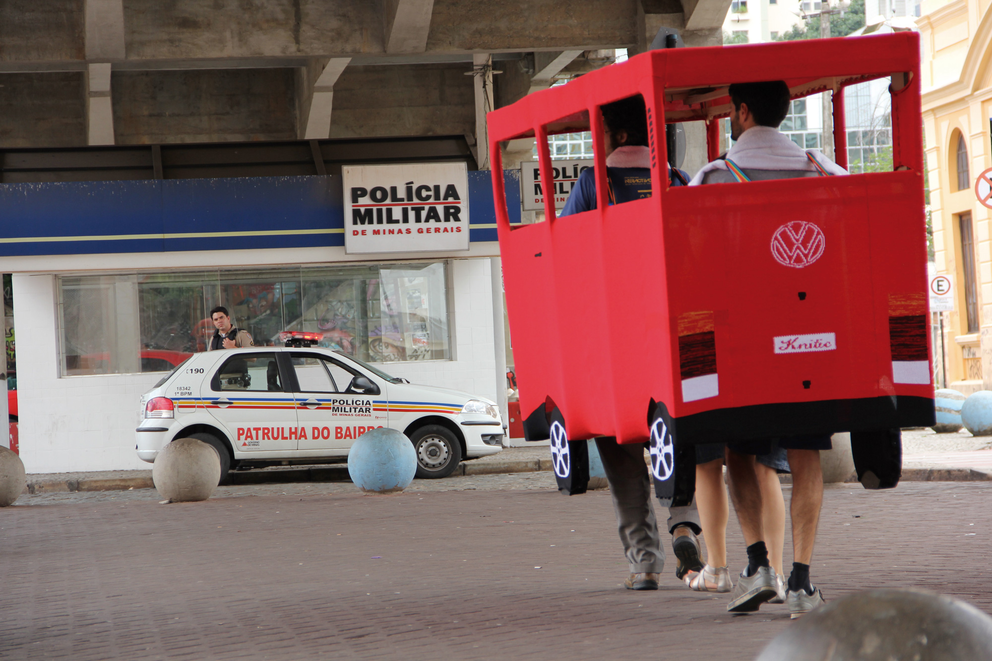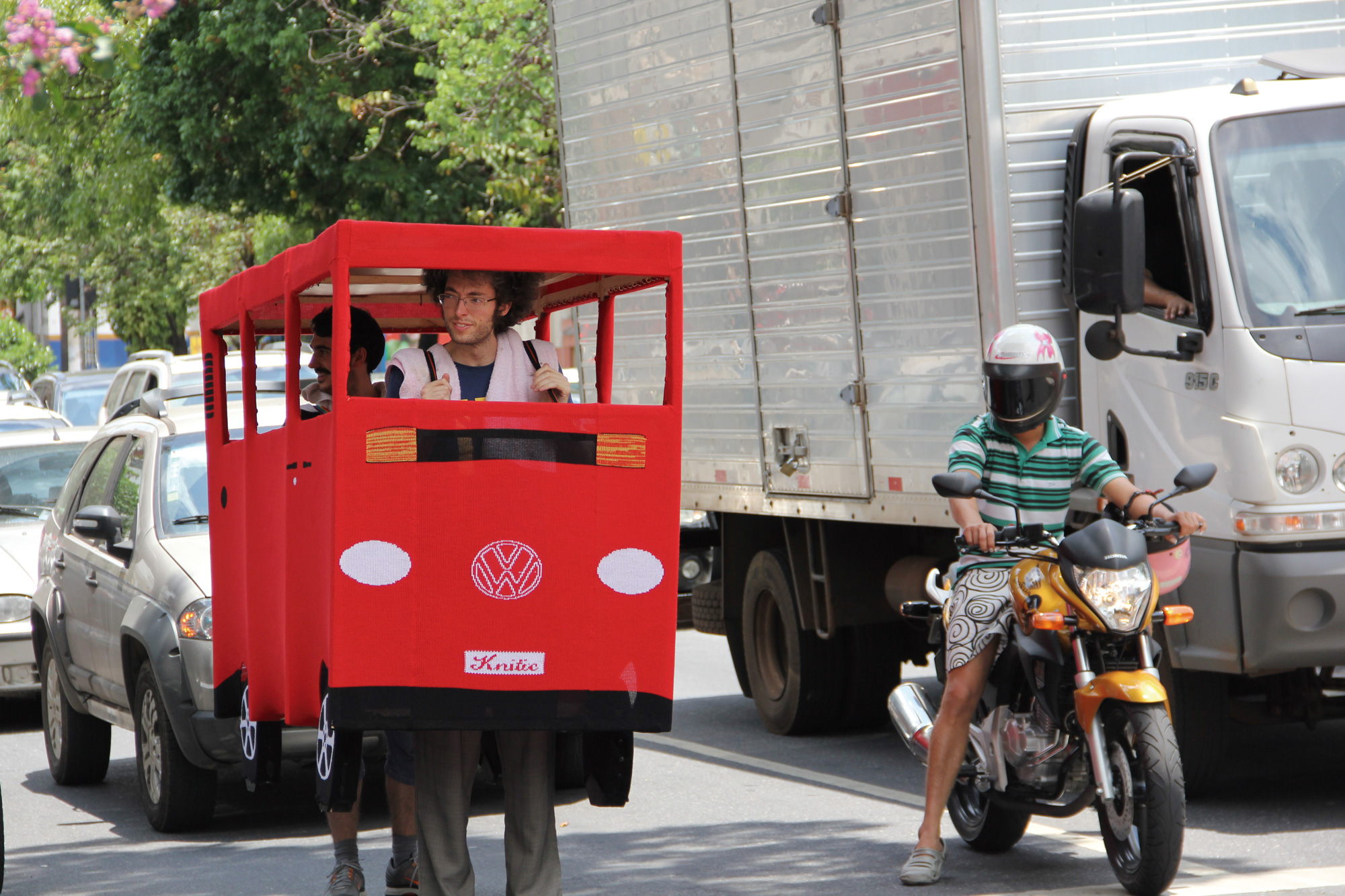 Kombi is a foot-powered knitted car for maximum of 3 people. Kombi has been knitted with Knitic - the open source knitting machine that me and Mar Canet Sola are developing. It was a residency project at Marginalia+Lab in Belo Horizonte, Brazil. The work was used for public intervention on the roads of Belo Horizonte and exhibited at the Marginalia+Lab 2012 residencies' exhibition. We have decided to make a knitted VW Kombi, since 2012 is the last production year of this car model in Brazil. Wikipedia: as of October 2012 it was announced that the production of the brasilian Volkswagen Kombi will end in 2013. The phaseout of the T2c marks the end of an era which lasted since 1935 - it will be the final production rear-engined Volkswagen after 78 years. VW played a crucial role in political decision of Brazil to invest in car roads' development instead of railway. Also Kombi is very present in the local life and culture of this country. Hence, these all were an inspiration for us to create this artwork. In addition to that, we aimed to make a statement of pedestrians' rights in the city, which are not enough respected by drivers. So, we had to get a car in order to get an equal treatment by the other vehicles. Download the digital catalogue.