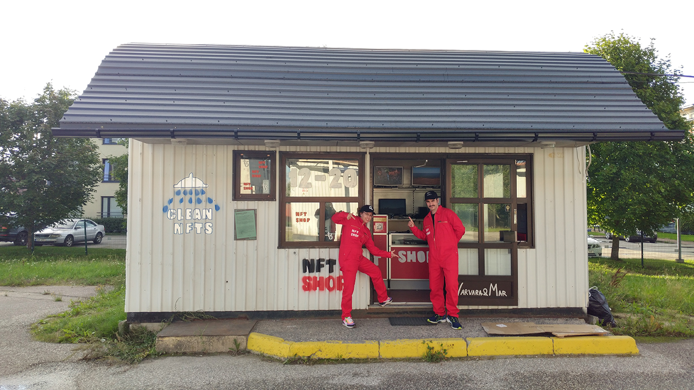 During urban festival UIT we have turned an abandoned gas station into NFT Shop. We hijacked all the branding (including gas price totem) and turned an old business to a new one. The NFT Shop was present in the physical gas station and online at the Hic et Nunc platform. All the NFT art was specially made for NFT Shop opening. What is more important, the artists were present, offering a conversation over a cup of coffee discussing the hot topics of NFT and cryptocurrency. So, what is NFT? NFT stands for a non-fungible token or simply put a certificate that proves the originality of the digital asset. We have already seen that cryptocurrency has its part in the economy. But what is NFT art, and what kind of art market it has to offer? NFT art shop operates within an alternative economy of cryptocurrency and speculates about the speculation. It is a shop / gallery / meeting place in an old gas station. Like the fuel’s price, NFT gas prices and art value fluctuate a lot, creating new opportunities and definitely damages. Exhibited: - urban festival UIT curated by Kadri Lind and Marie Kliiman, Tartu, Estonia (18.-21. aug 2021)