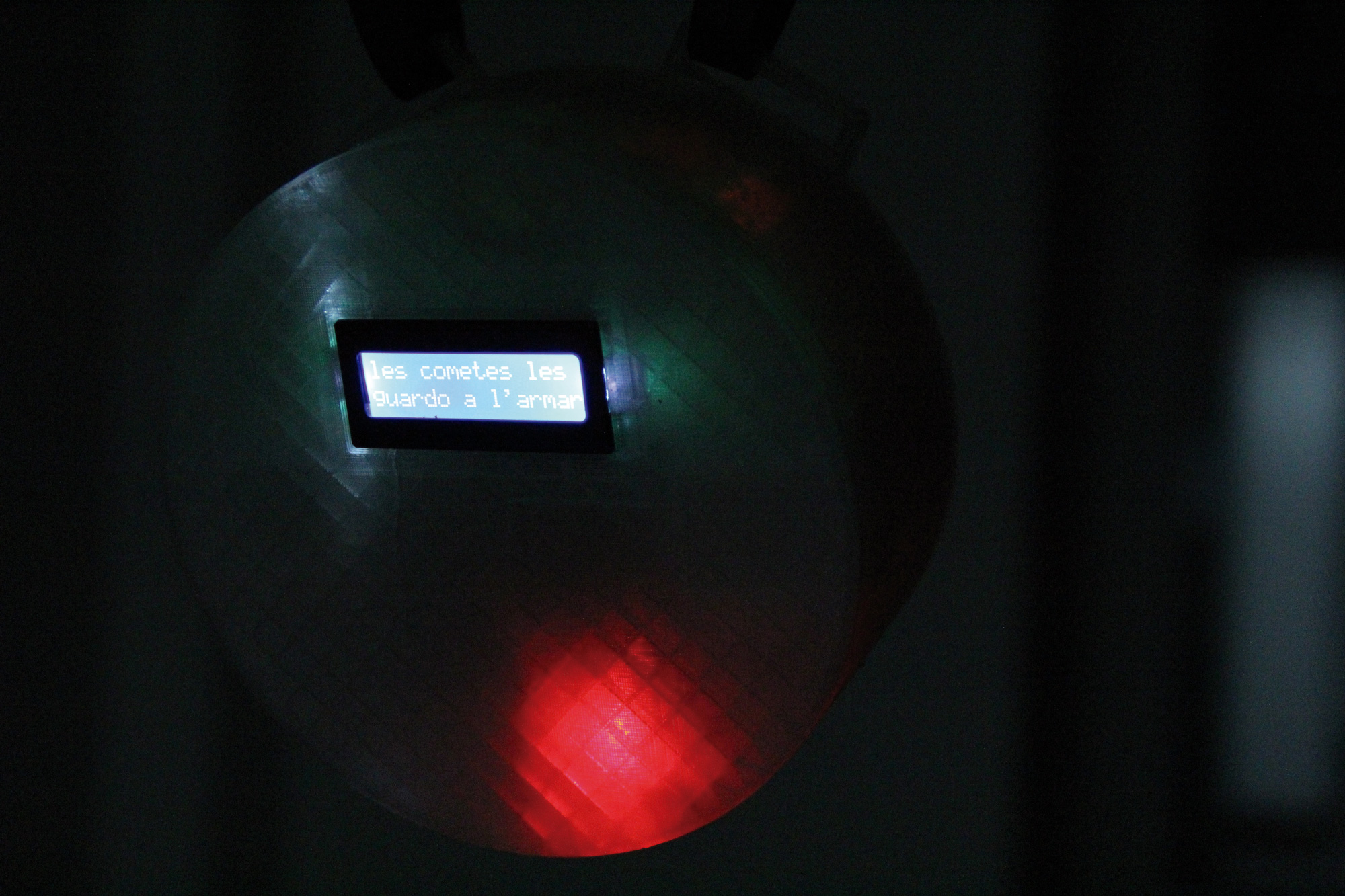 By exploring digital landscapes and excess of wireless communication in urban space, we started to search for poetic expression by applying radio waves. The intention was to create totally invisible and intangible work that will exist in the air. Hence we got an idea to display poems by Eduard Escoffet, who kindly agreed to collaborate with us. Each minute we are sending from dedicated WiFi router 4 32-character lines of a poem by changing the names of device. It means while choosing a network one will discover some lines of poetry instead of typical networks' names. Moreover, the work introduces an unusual way for not only applying WiFi waves for artistic purpose but also for a novel form for performing poetry. We have created a sculptural piece that displays reachable WiFi networks' names, and thus, also the poetry performed through the radio waves.